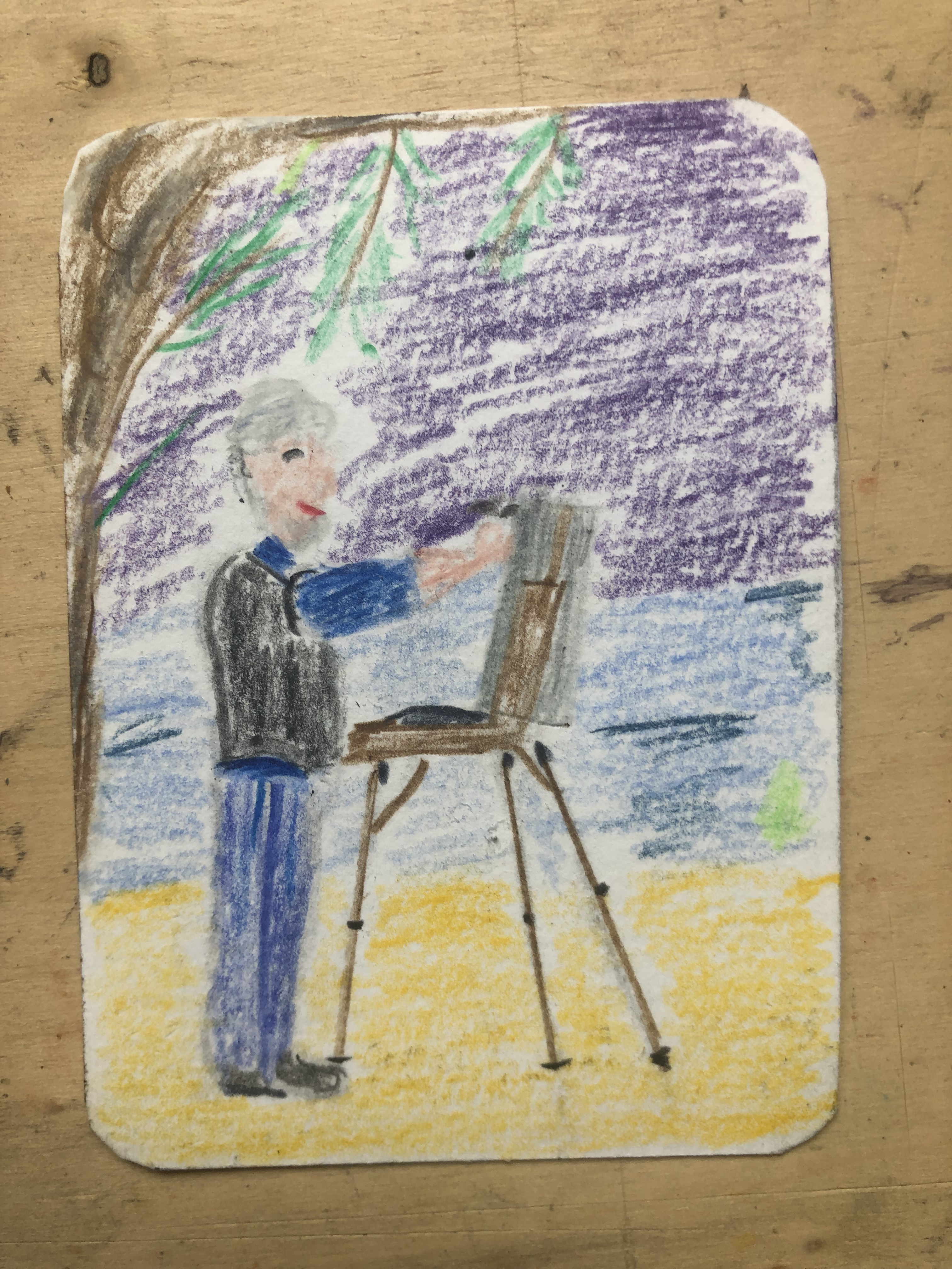 Aber was hat Theophil damit zu tun? Also, bei mir im Dorf fand mitte September ein Kunstmarkt statt. Dort kam ich mit einer, aus meiner Sicht gesehen jungen Künstlerin, Karolina Fink in ein interessantes Gespräch. Ihre Bilder erinnerten mich spontan an Frida Kahlo. Sie schlug mir vor, eben solche Karten zu tauschen. Wenig später fand ich einen Brief mit ihrer Karte in der Post. Nun war ich gefordert. Und das erwies sich als schwiriger als gedacht! Zum einen hat Bösener keine Blacokarten, so das ich mir die selber zurecht schneiden mußte, zum anderen viel es mir sehr schwer so filigran zu malen. Dazu kam das die Meisten meiner Motive nicht zum Carakter der Tauschidee passen. Schließlich habe ich mich für eine Abwandlung meines Logos entschieden. Dabei bin ich so darin versunken, dass ich den Fortgang und das Endprodukt nicht dokumentiert habe. Daher hier nur der einzige Zwischenschritt den ich fotografiert habe.